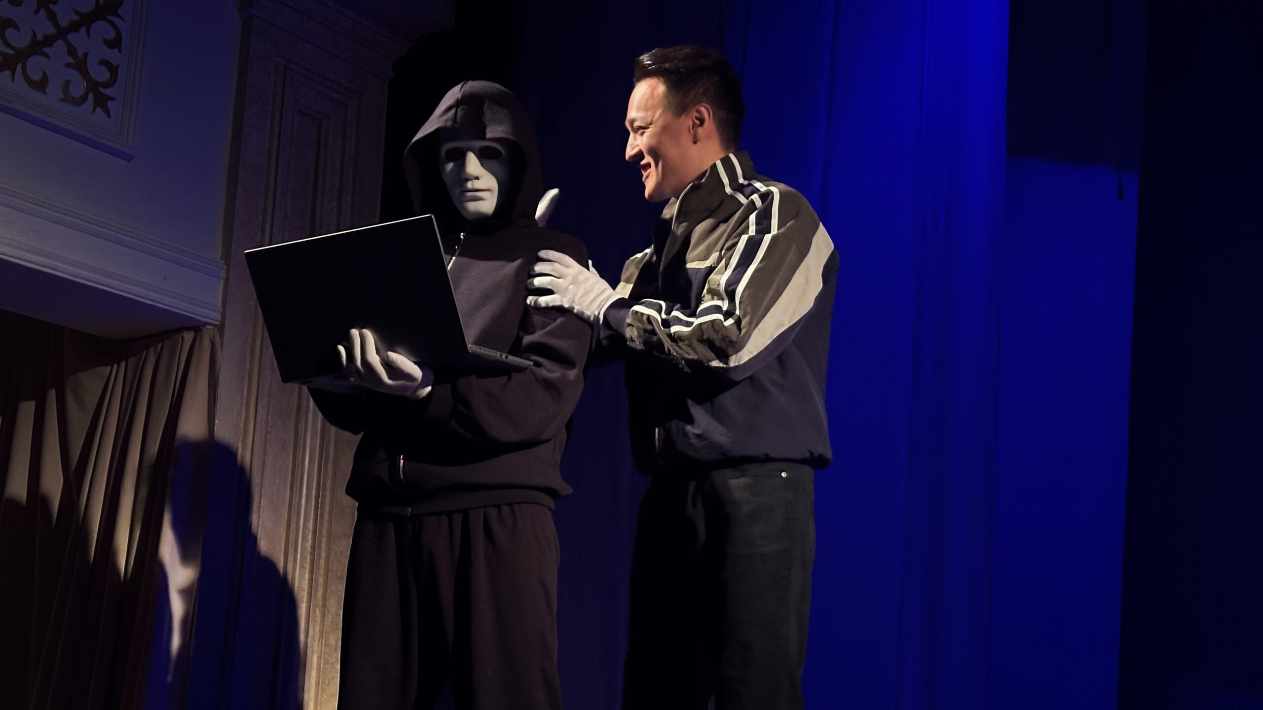 Казбек Ескара — фактурный и запоминающийся актер, выделяющийся среди сорока двух участников труппы.